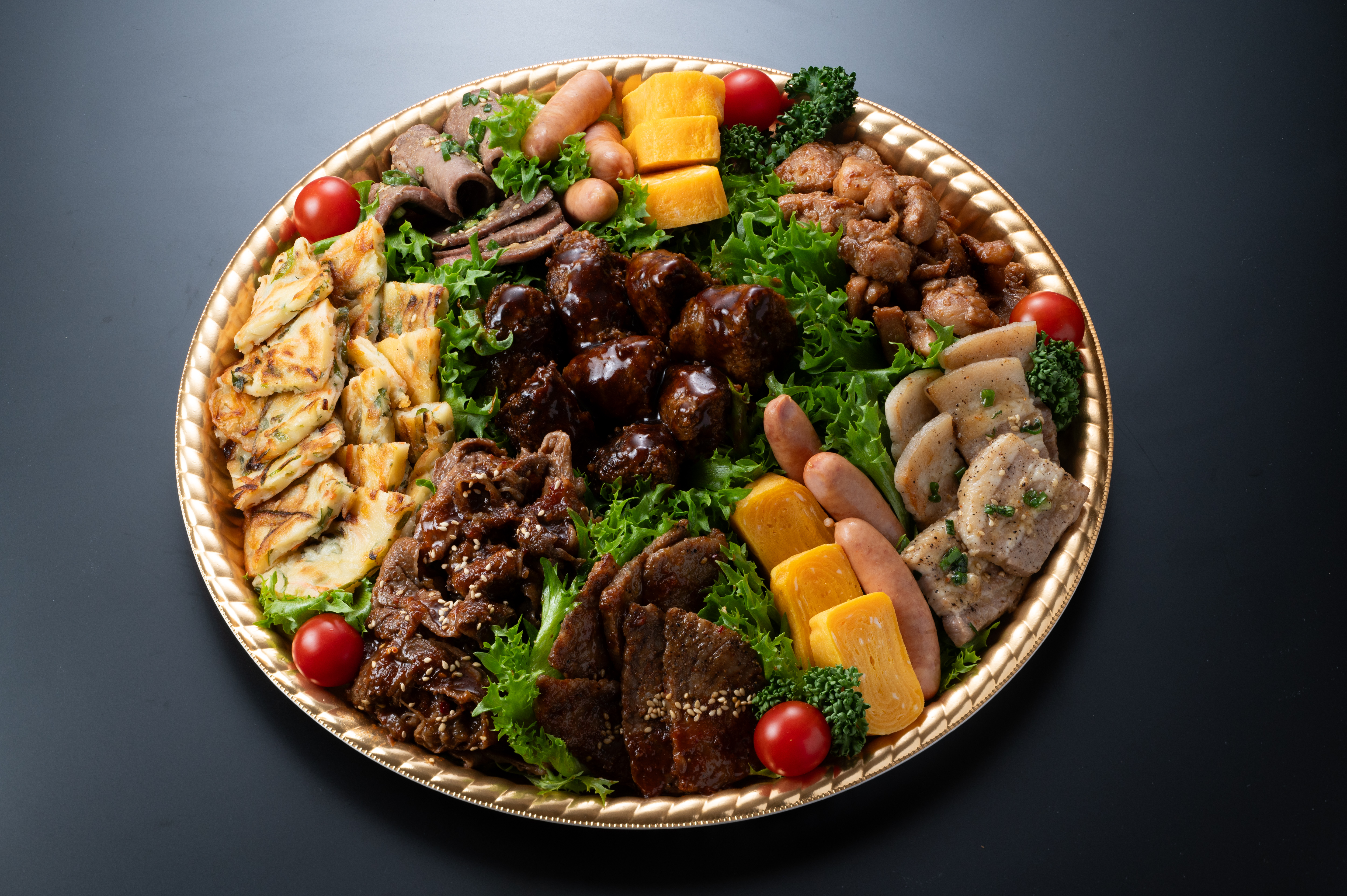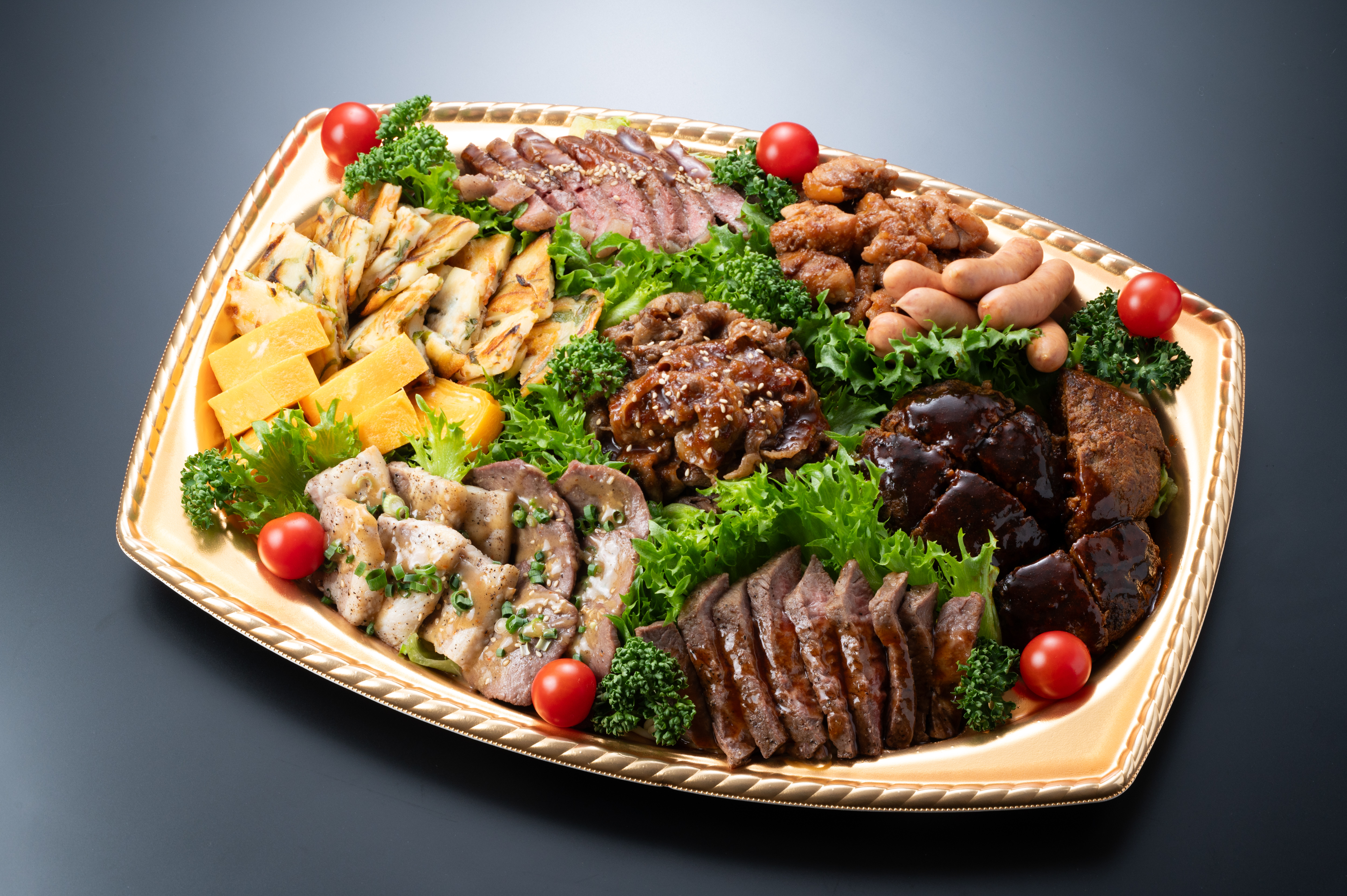 特製焼肉/ハンバーグオリジナルソース/粗挽きウインナー/豚バラ塩焼き/鶏モモタレ焼き/チヂミ/玉子焼き